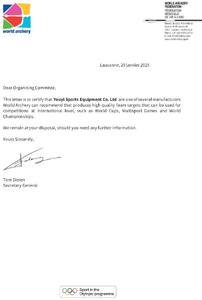 友誼體育將全力以赴,服務(wù)全國所有射箭比賽,服務(wù)國家隊、省市基層射箭隊等,提供優(yōu)質(zhì)的射箭裝備和優(yōu)秀的賽事服務(wù)保障,為中國射箭事業(yè)的發(fā)展和推廣貢獻自己的力量。